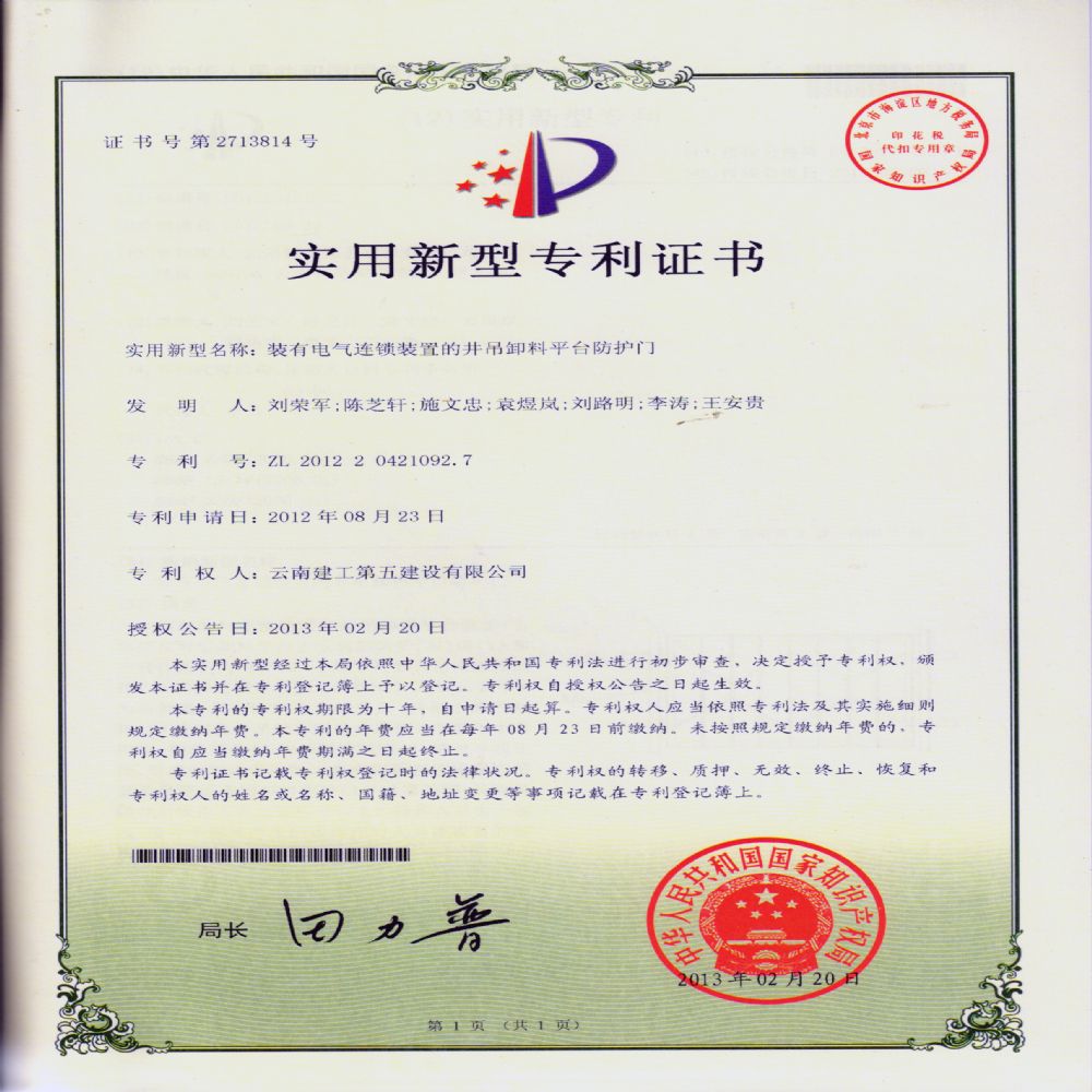 裝有電氣連鎖裝置的井吊卸料平臺防護門