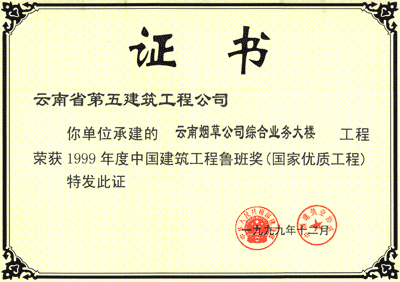 煙草魯班獎狀